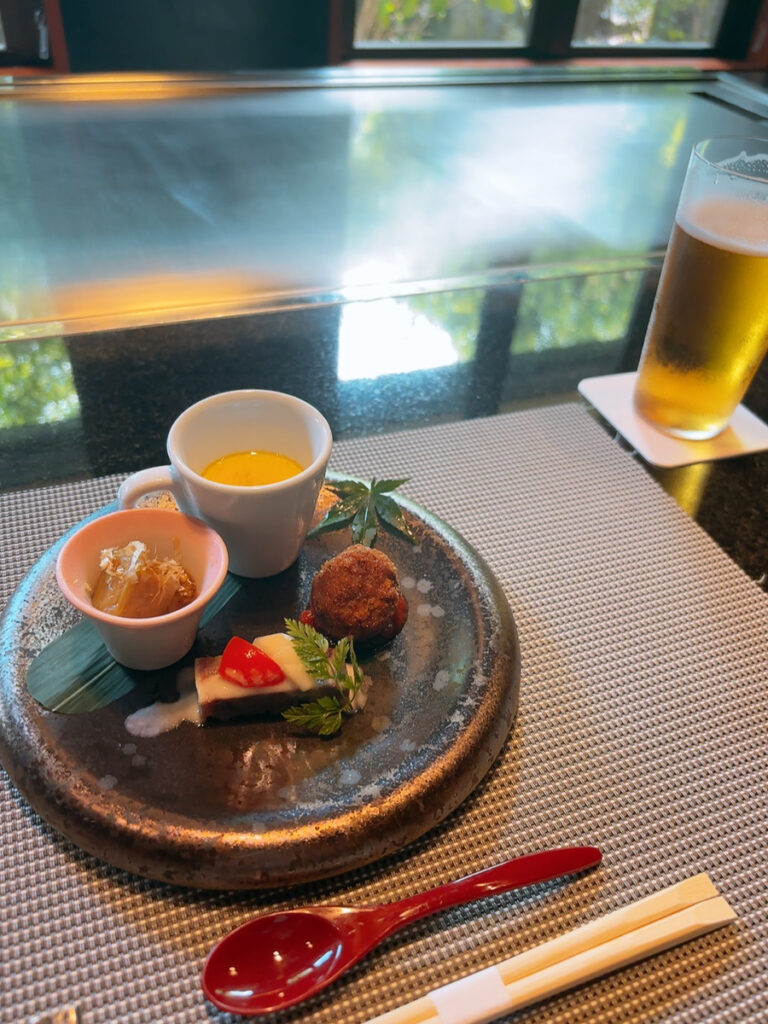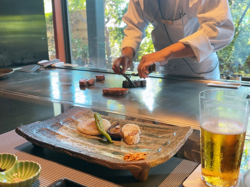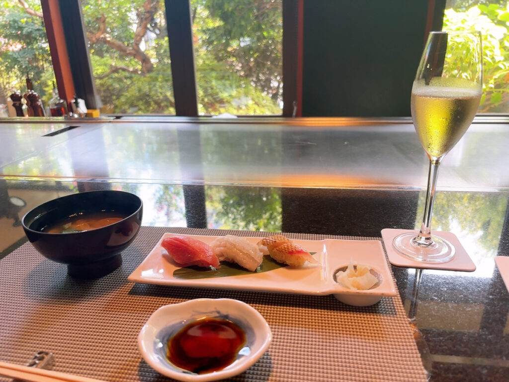 和モダンなお店で和牛ステーキやお寿司をいただきました。カウンター席が上質空間でより一層お食事も美味しく感じました。ご馳走様でした。
